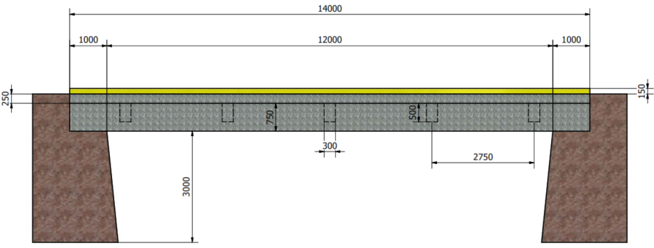 Jembatan gelagar T beton bertulang dengan panjang bentang 14 m di Desa Krajan Kalipuro Banyuwangi akan dilewati untuk pengantaran 6 unit Power Transformer seberat 152 Ton dari Banyuwangi ke GITET Kalipuro dengan menggunakan kendaraan khusus (Multi-Axle Trailer). Jembatan ini terdiri dari satu lajur jalan raya dengan tebal perkerasan aspal sekitar 5 cm. Gambar jembatan dapat dilihat pada gambar berikut ini.