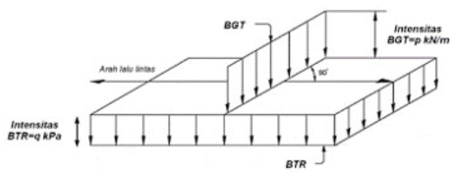 Berdasarkan SNI 1725:2016 pembebanan jembatan, faktor beban dinamis ditentukan berdasarkan panjang bentang jembatan. Untuk panjang jembatan 14 m maka beban rencana harus diperbesar sebesar 40%.