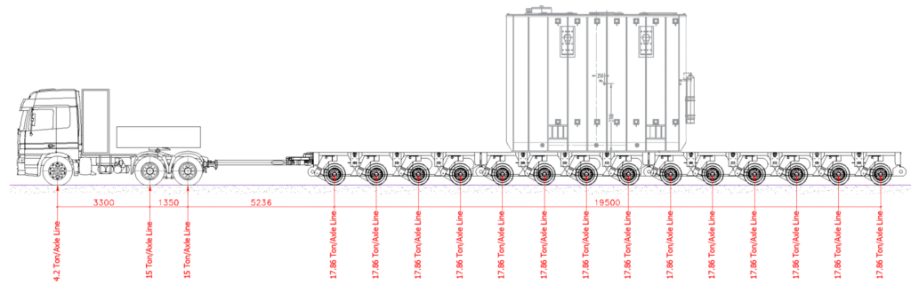Jembatan ini akan dilalui oleh kendaraan beban khusus seperti gambar dibawah ini dengan konfigurasi transportasi seperti dibawah ini.