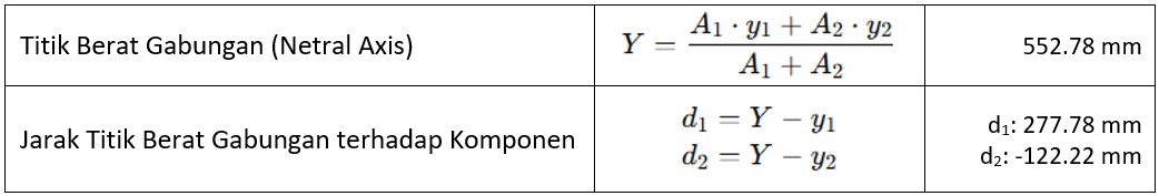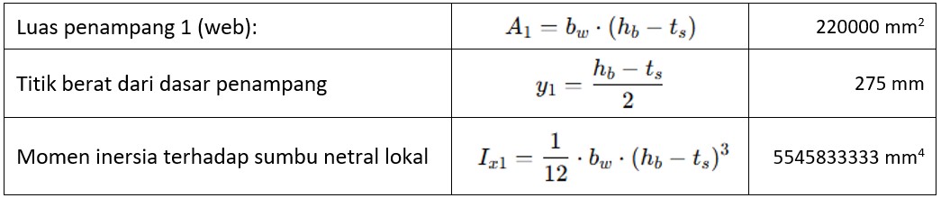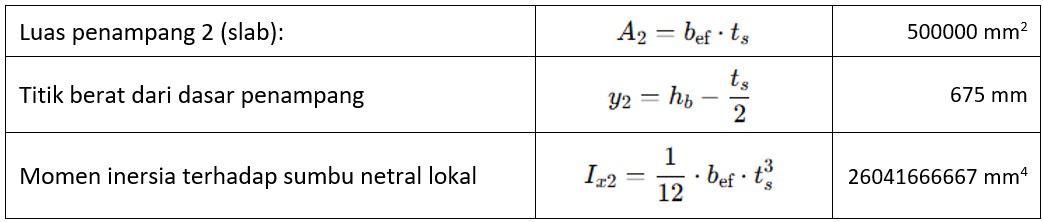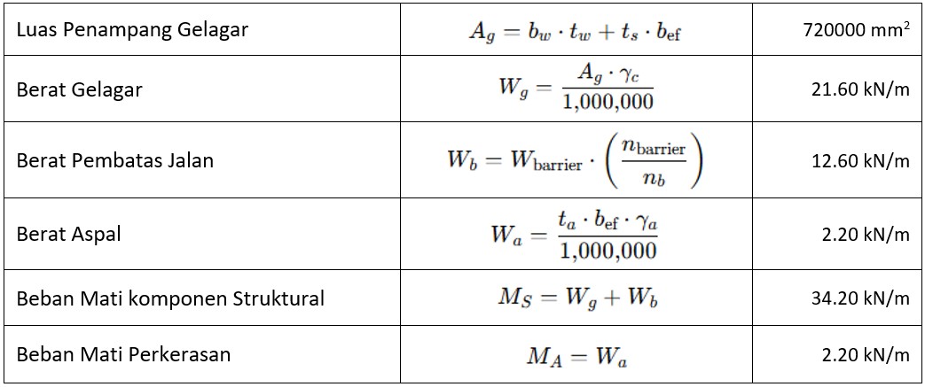 Nilai-nilai ini berguna untuk menghitung momen inersia total, tegangan lentur maksimum, serta distribusi beban hidup antar gelagar berdasarkan kekakuan penampang.