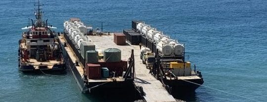 Penambatan barge dilakukan dengan menggunakan sistem penambatan khusus yang dapat mencakup penggunaan tali tambat, rantai, sling, dan sistem pengikat lainnya guna menjaga barge tetap terikat dan aman di lokasi tersebut. Hal ini dilakukan agar barge tidak bergerak atau terombang-ambing oleh arus laut atau angin, sehingga memungkinkan untuk melakukan proses bongkar muat atau aktivitas lainnya dengan aman dan efisien.
