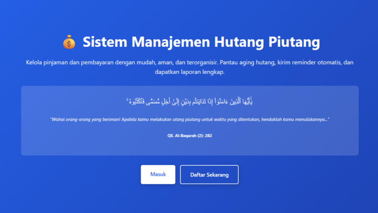 Kelola ratusan transaksi hutang piutang dengan mudah menggunakan Aplikasi Sistem Manajemen Hutang Piutang berbasis web yang powerful dan user-friendly! Aplikasi...