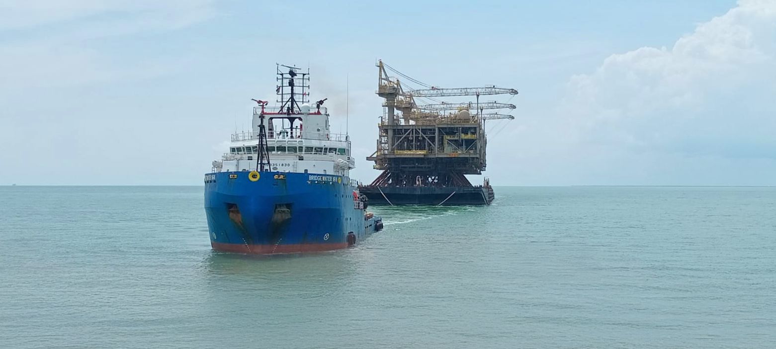 * Mengirimkan anjungan minyak dan gas besar ke lokasi lepas pantai