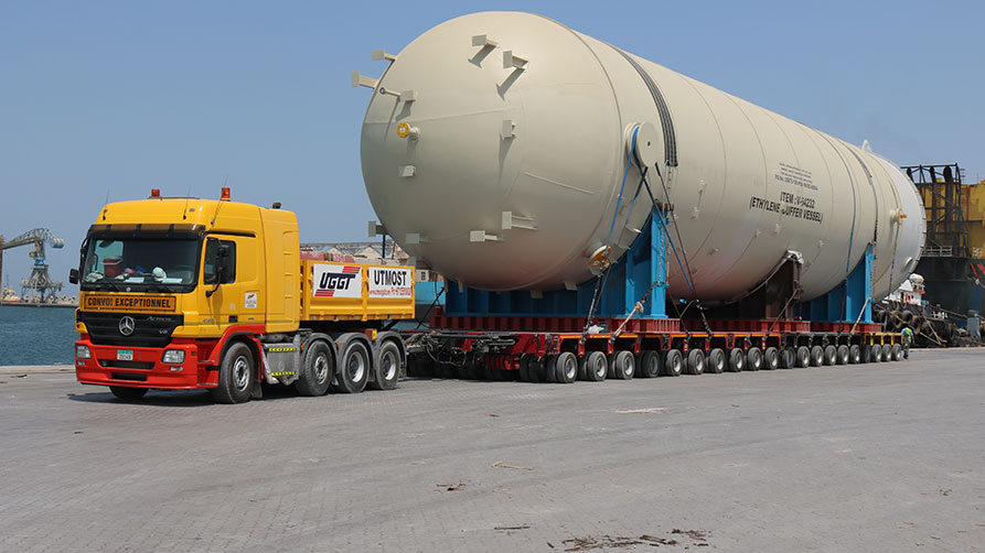 * Mengangkut mesin berat untuk proyek pertambangan, pabrik, dan konstruksi