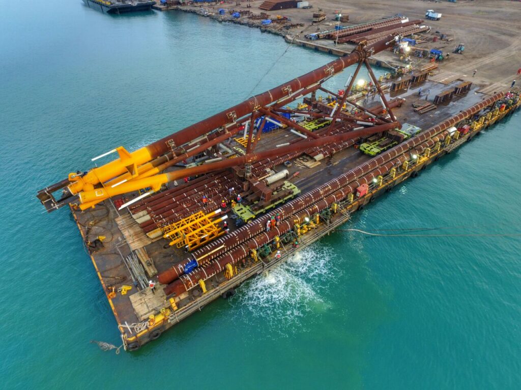 Tahap akhir dari loadout adalah pemasangan akses jembatan atau ramp untuk memfasilitasi transfer struktur dari darat ke tongkang. Hal ini membutuhkan presisi dalam pengukuran dan kemampuan teknik untuk menggabungkan kedua elemen dengan aman dan efisien.
