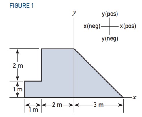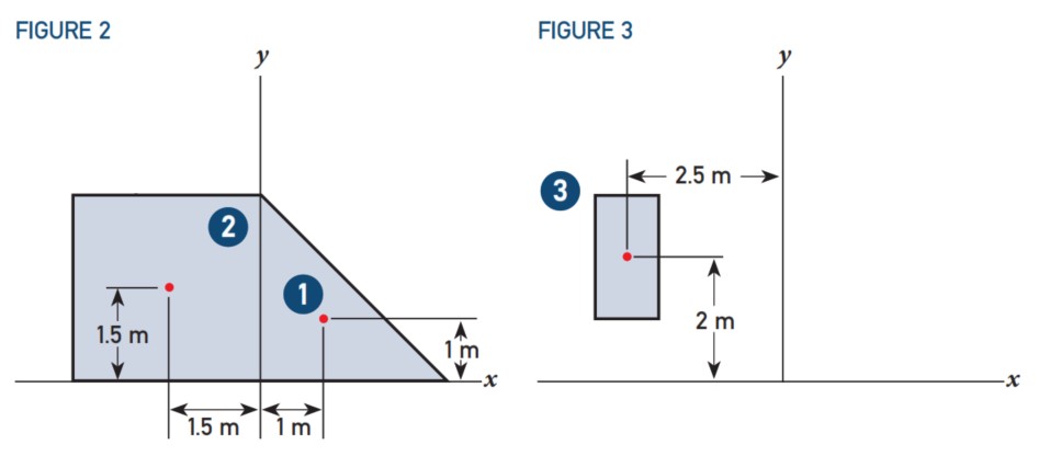 Untuk contoh pada Gambar 1 ini, sumbu x dipilih di dasar objek dan sumbu y dipilih sehingga berjalan lurus ke bawah di antara bentuk segitiga dan persegi panjang.