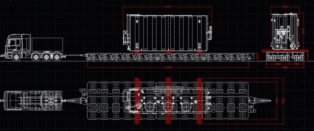 - Total Berat Transporter dan Transport Beam = 73.5 Ton
