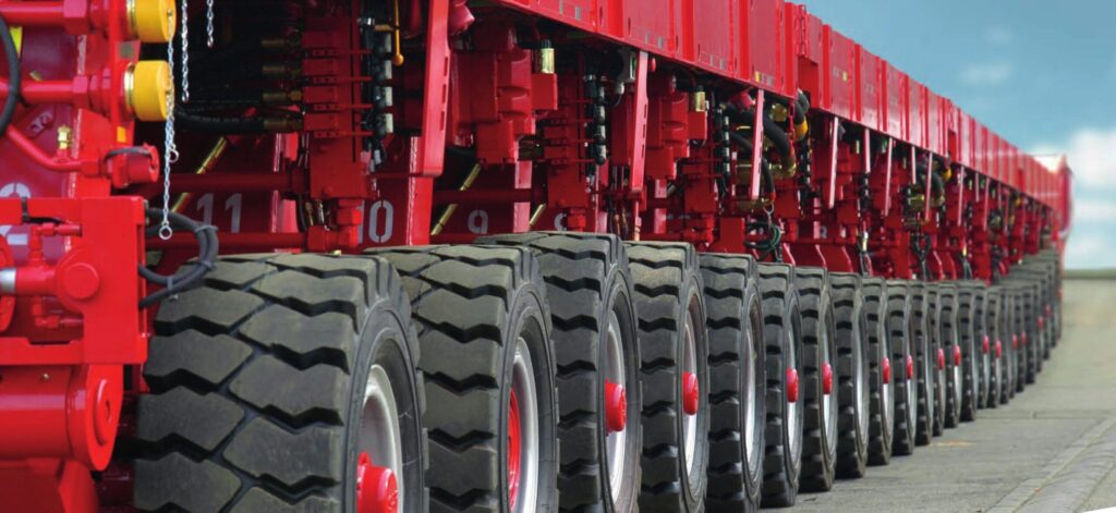 Adapun Spesifikasi Ban SPMT atau Self-Propelled Modular Transporter, spesifikasi ban rodanya berbeda:
