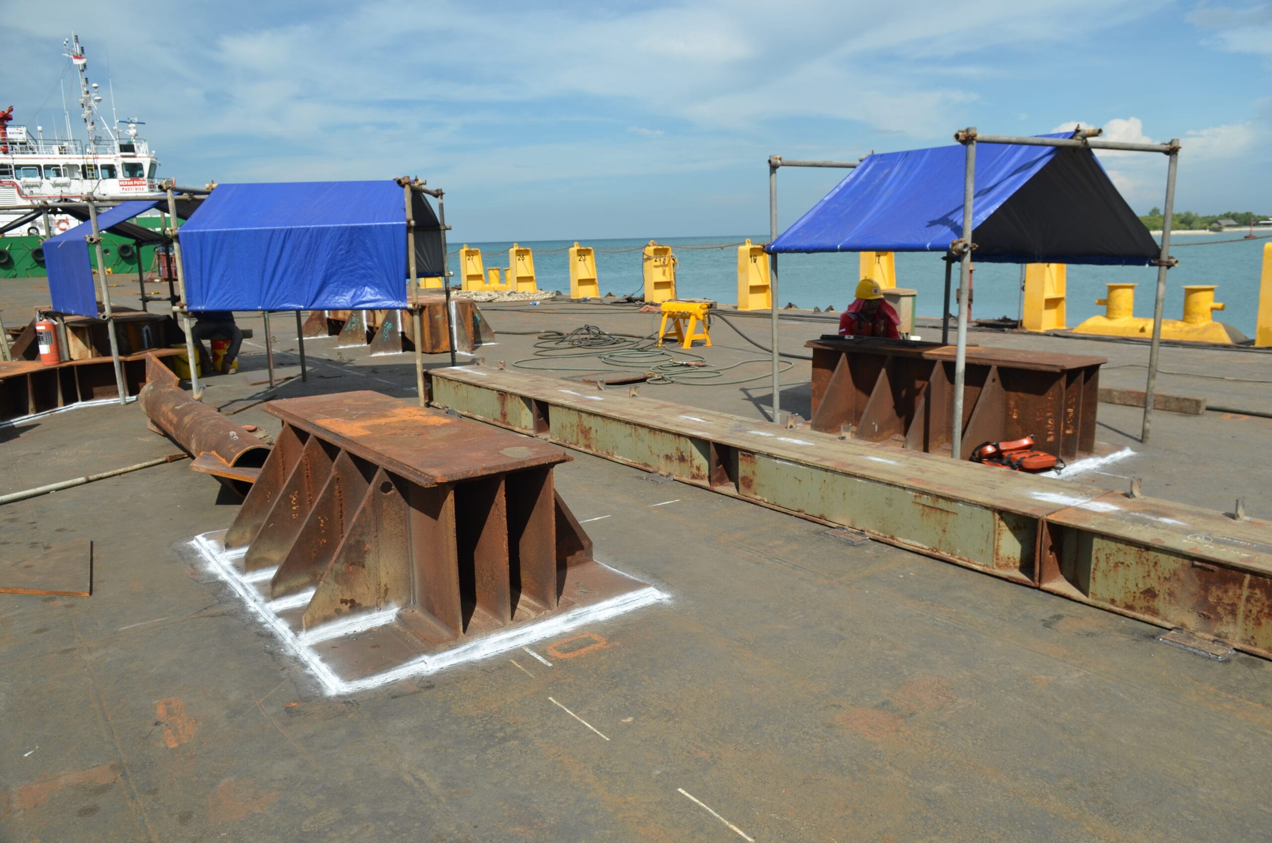 Integrated Stucture: Ini melibatkan struktur gabungan dari tongkang, seafastening, dan kargo, yang mampu menahan beban yang diinduksi oleh pembengkokan dan geser.
