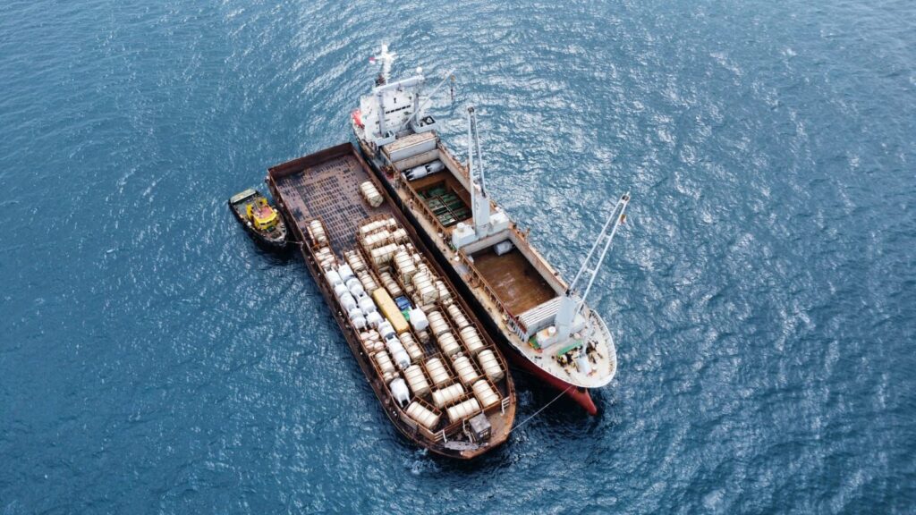 Pengecekan fender antarkapal dan barge juga harus dilakukan: fender karet (seperti penggunaan ban atau yokohama fender) ditempatkan di titik kontak untuk menghindari gesekan tajam. Tim safety menandai zonal exclusion area dengan stanchion dan pita, menjauhkan personel non-esensial hingga operasi nanti selesai.