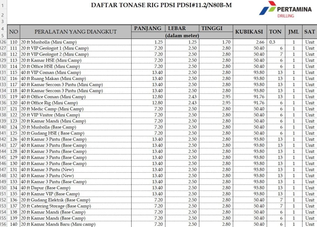 Contoh Packing List Moving Rig Pertamina 1000 HP, dengan power 2-unit engine D.3508 dimana 1 set ini bisa terdiri dari bagin rig itu sendiri maupun equipment pendukung lainnya seperti alat berat atau porta-camps.