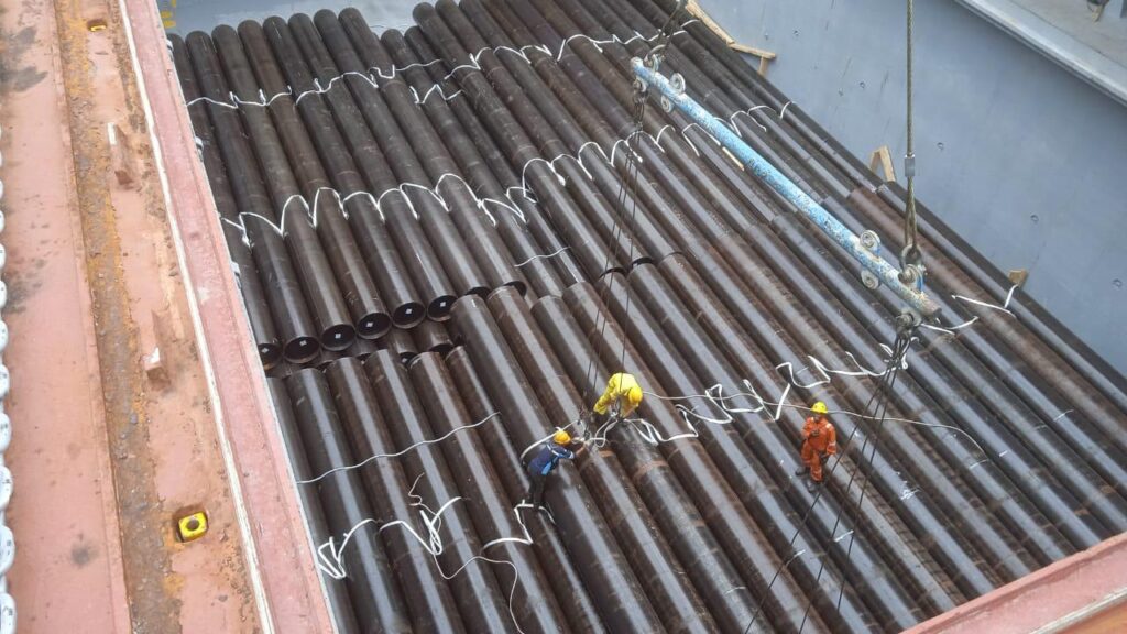 Pipa yang dimuat tidak boleh bersentuhan langsung dengan sisi atau dasar kapal. Namun, setiap pipa harus bersentuhan sepanjang panjangnya dengan pipa atau balok di sekitarnya. Hal ini memastikan distribusi beban yang merata dan mencegah pergerakan lateral yang dapat menyebabkan kerusakan. Tindakan pencegahan harus diambil untuk meminimalkan pergerakan lateral pipa selama transit.