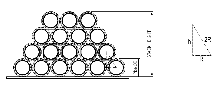 Jenis penumpukan ini disebut ‘nested stacking’ (pipa yang duduk dalam alur). Dengan pipa yang duduk dalam alur, total tinggi tumpukan pipa lebih rendah daripada jumlah tumpukan dikali diameter. Istilah ini disebut ‘Nested Diameter’. Nested outer diameter (Nested OD) adalah total tinggi tumpukan dibagi dengan jumlah tumpukan. Ini lebih kecil daripada diameter pipa yang sebenarnya.
