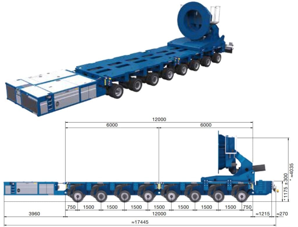 Blade lifter dengan spesifikasi diatas memiliki berat 13,5 tons dengan payload moment sampai 100 m.t dan rotor blade adapter untuk diameter 2.1 dan 2.8m, sehingga untuk yang lebih besar, maka harus dicek kembali details spesifikasi yang tersedia.